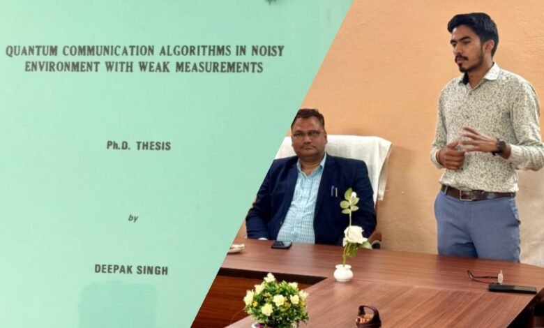 डॉ0 दीपक सिंह ने “QUANTUM COMMUNICATION ALGORITHMS IN NOISY ENVIRONMENT WITH WEAK MEASURMENTS” जैसे बहुत ही महत्वपूर्ण विषय पर “पी0एच0डी0” की उपाधि आई0 आई0 टी0 रूड़की जैसे प्रतिष्ठित संस्थान से प्राप्त की है।