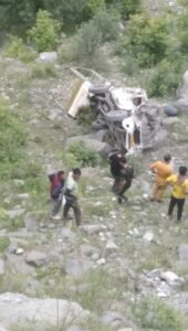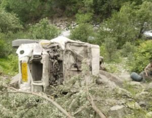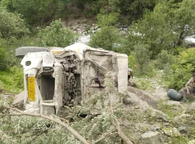 यमुनोत्री राष्ट्रीय राजमार्ग पर हनुमान चट्टी के पास एक यूटिलिटी वाहन संख्या UK05CA1275 दुर्घटनाग्रस्त।
