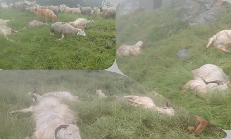 उत्तरकाशी जनपद के मोरी विकासखंड के नूरानु डांडे में रविवार देर रात आकाशीय बिजली गिरने से 30 से 40 भेड़-बकरीयां मर गई।