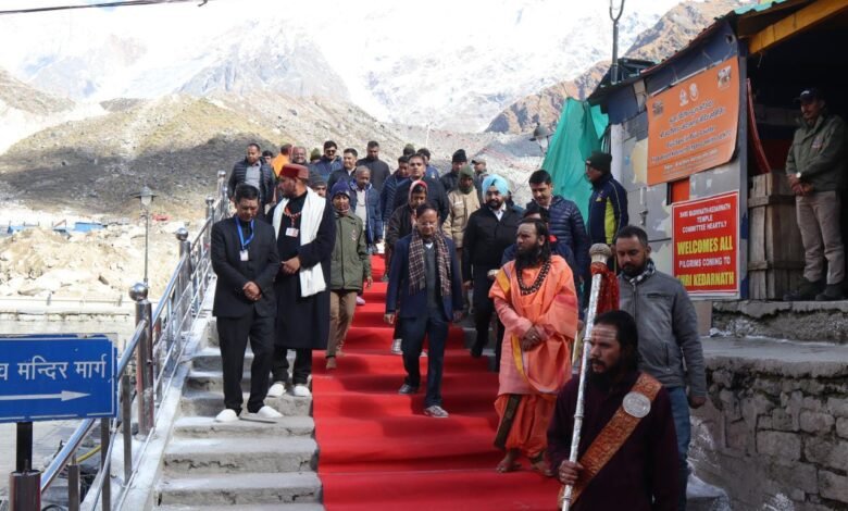 जिलाधिकारी डाॅ. सौरभ गहरवार एवं पुलिस अधीक्षक विशाखा ने उनका स्वागत किया। हैलीपैड से उतरते ही उन्होंने केदारनाथ क्षेत्र एवं आपदा की जानकारी लेना शुरू कर दिया। मंदिर के समीप तीर्थ पुरोहित समाज ने परंपरागत मंत्रोच्चारण एवं रूद्राक्ष की माला पहना कर उनका स्वागत किया।