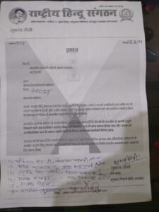दिनांक 18/3/2024 को “तहसीलदार” ऋषिकेश के माध्यम से देश के “गृहमंत्री” अमित शाह को “राष्ट्रीय हिन्दू संगठन” के पदाधिकारियों ने विगत 8 मार्च को दिल्ली के इंद्रलोक में, “सब-इंस्पेक्टर” मनोज तोमर को अपनी ड्यूटी के दौरान सड़क पर नमाज अदा करने वाले नमाजियों से ट्रैफिक कंट्रोल करने तथा नमाजियों को सड़क से हटाने पर संस्पेड करने पर “राष्ट्रीय हिन्दू संगठन” ने सब-इंस्पेक्टर की जल्द बहाली ना करने पर राष्ट्रीय हिन्दु संगठन द्वारा देशभर में विरोध प्रदर्शन करने को बाध्य होना पड़ेगा।