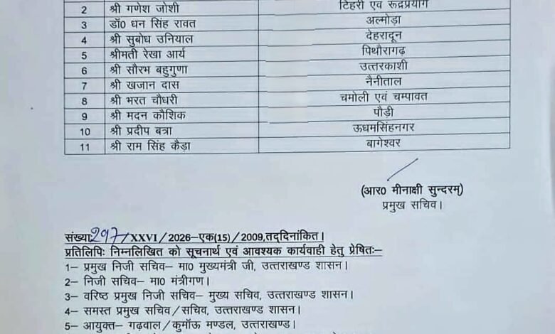 जारी आदेश के अनुसार उत्तरकाशी जनपद की जिम्मेदारी श्री सौरभ बहुगुणा को सौंपी गई है, जो अब जिले में चल रहे विकास कार्यों, योजनाओं और अनुश्रवण समितियों की निगरानी करेंगे।
